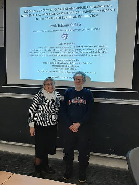 4 лютого  2026 р. о 15.30 за британським часом відбулася  доповідь зав. кафедри ВМКПМД,  проф. Ярхо Т. О. на математичному науковому семінарі Школи (факультету) природничих і комп’ютерних наук  Університету м. Абердін (Шотландія) на тему:
