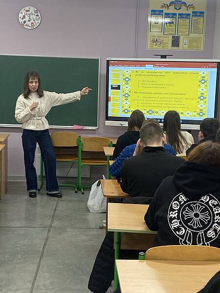 Наприкінці лекції учням було запропоновано пройти тестові завдання з «Історії України», це був тренувальний підхід у підготовці до НМТ з визначенням і обговоренням правильних відповідей.